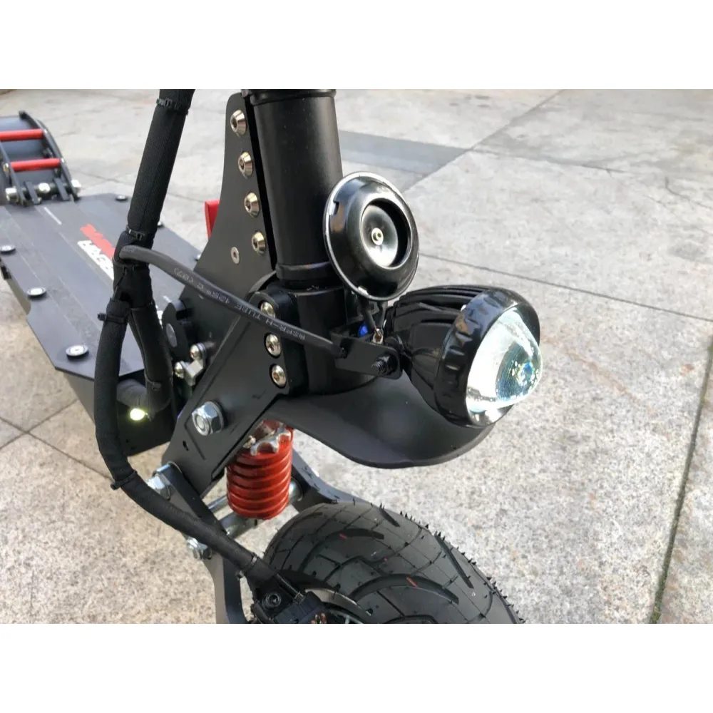 Электросамокат WS-Baikal 2400W 52V25ah - надежная полноприводная модель для передвижения по городским улицам и пересеченной местности. Два мотор-колеса гарантируют плавный разгон до 57 км/час, позволяя легко преодолевать подъемы, спуски и небольшие препятствия на пути. Качественные пружинные амортизаторы обеспечивают плавность хода и комфорт водителя даже при движении по грунтовой дороге или плитам со стыками. Гидравлические тормоза чутко реагируют на команду водителя и способны быстро остановить транспортное средство в экстренной ситуации, что особенно важно при высокоскоростной езде. Данная модель оснащена бортовым компьютером, с помощью которого пользователь может установить индивидуальные настройки. Данные бортового компьютера отображаются на электронном дисплее, позволяя водителю оценивать основные параметры движения. Полного заряда аккумулятора хватит на 75 км пути, что позволяет не беспокоиться о подзарядке в течение всего дня. Для дальних поездок производители предусмотрели удобное мягкое сиденье. За безопасность движения в темное время суток отвечает мощная передняя фара, задние габаритные огни со стоп-сигналом и светодиодная подсветка на деке. Электросамокат WS-Baikal 2400W обладает привлекательным современным дизайном и достойными техническими характеристиками, которые подарят свободу передвижения и удовольствие от каждой поездки.