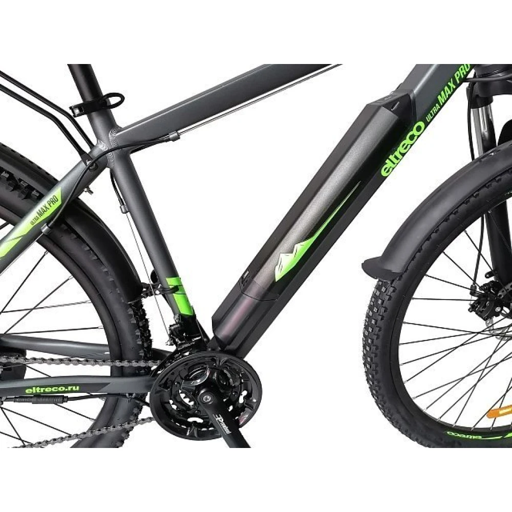 Eltreco Ultra Trend UP! – усовершенствованная модель велогибрида Ultra Trend. Лёгкая и прочная алюминиевая рама, к которой прикрепляется съёмная батарея, 27,5-дюймовые манёвренные колёса и практичная 7-скоростная трансмиссия делают управление велосипедом максимально простым и комфортным. За остановку велогибрида Ultra Trend UP! Отвечают два дисковых механических тормоза. Для нетрудного преодоления неровностей на новую модель Eltreco установлена амортизационная вилка с опцией блокировки. Приятным бонусом к качественной обвеске будут установленные крылья, превосходно защищающие от грязи и воды, и багажник, на котором удобно перевозить объёмные грузы.