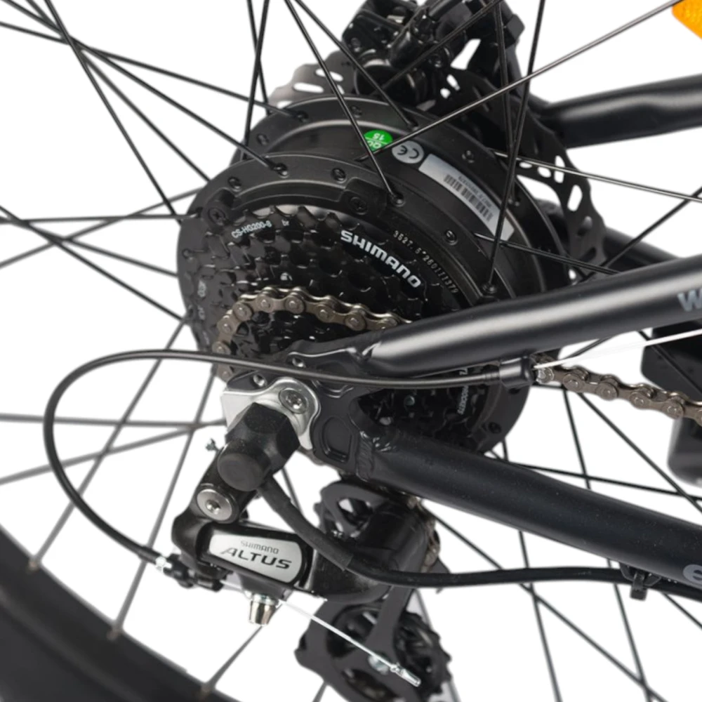 Важной частью новинки Eltreco Walter является его мощный электродвигатель с возможностью плавного старта. На велогибриде установлен электромотор мощностью 350 Ватт, позволяющий разогнаться до 35 км/ч, и легкосъёмный аккумулятор ёмкостью 10 Ач  и напряжением 36 В, который даёт возможность преодолевать до 50 км на одном заряде.